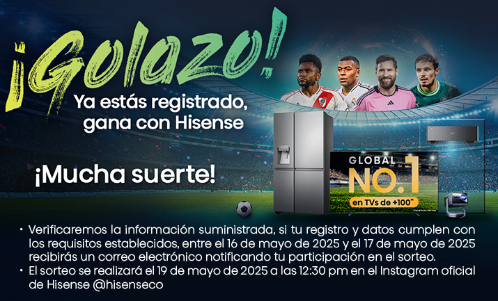 Para participar, registra tu factura y datos personales en el sitio oficial de la campaña. Espera el sorteo que se llevará acabo el 19 de mayo de 2025 a las 12:30 pm en el Instagram oficial de Hisense @hisenseco